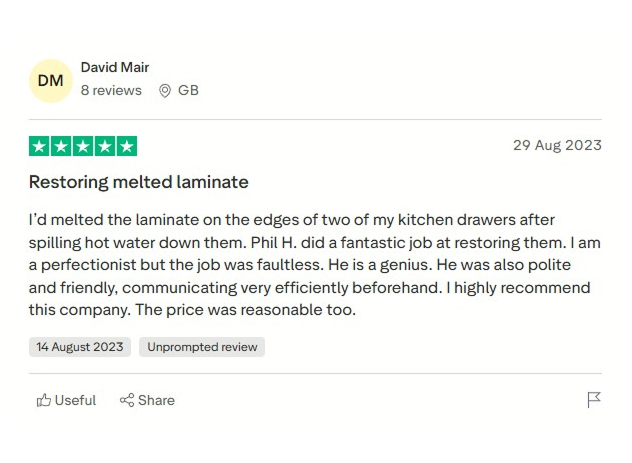 In the hands of our Dr Fill Limited, worktops and countertops are expertly restored to their original condition. Whether it be laminate, marble or granite surfaces, our team have extensive experience in repairing and finishing damage in-situ.